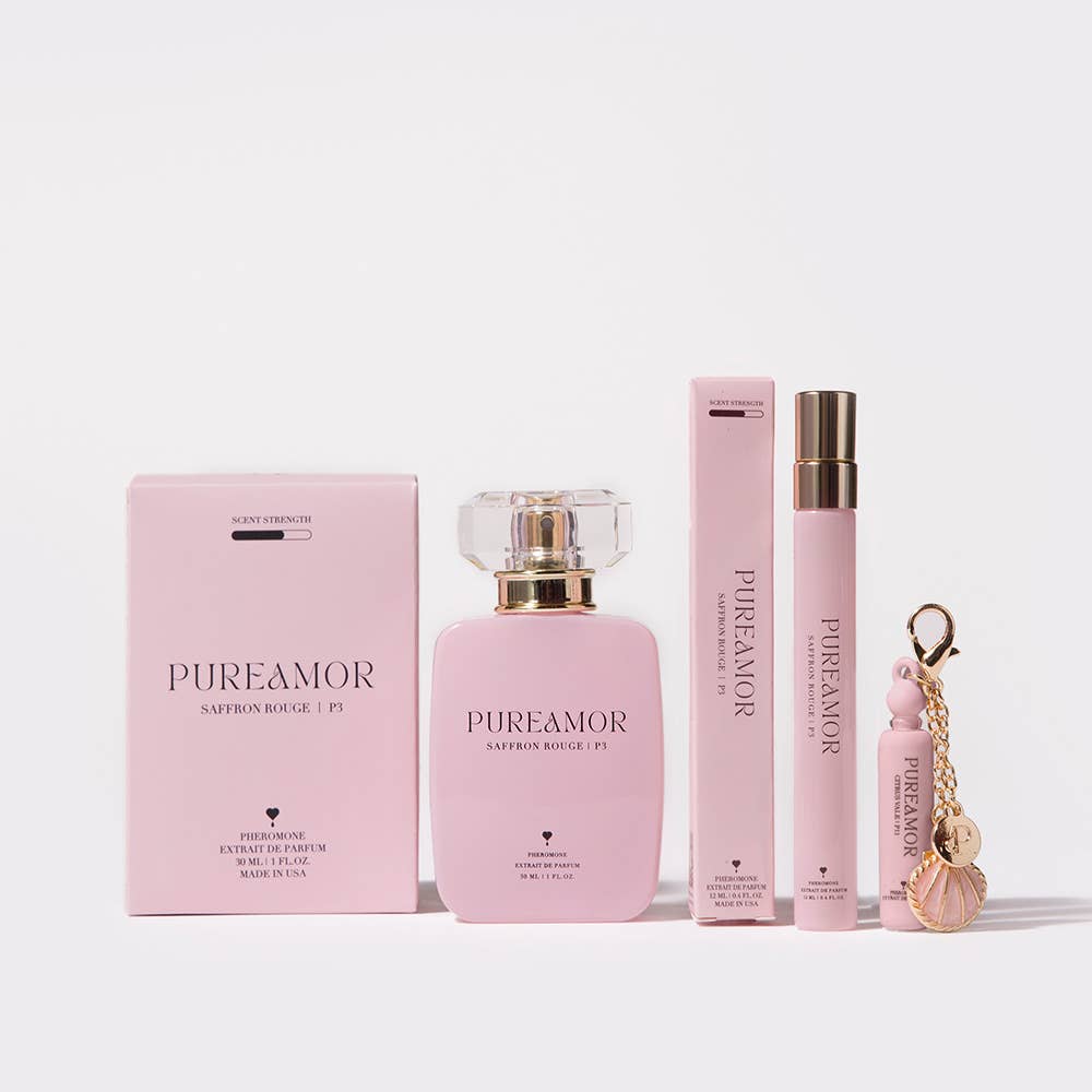 Saffron • Amber • Cedarwood Pheromone Perfume Saffron Rouge is a radiant, magnetic pheromone perfume inspired by Baccarat Rouge 540 by MFK. Warm saffron and luminous amber blend with smooth cedarwood for a bold, addictive scent customers instantly recognize and seek out. Notes: Saffron, Jasmine, Amberwood, Ambergris, Fir Resin, Cedarwood Inspired by: Baccarat Rouge 540 by MFK