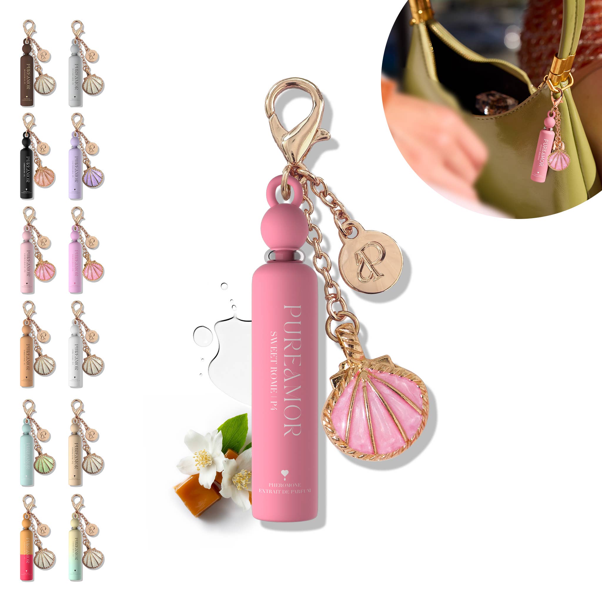 Caramel • Vanilla • Jasmine | Pheromone Perfume Sweet Rome is a warm, playful pheromone perfume inspired by Born in Roma by Valentino. Juicy blackcurrant and soft jasmine melt into creamy vanilla and caramel for a sweet yet sophisticated scent with broad feminine appeal. Size: 2 ml Keychain Perfume Clip on. Take everywhere. Fragrance Notes Top: Blackcurrant, Bergamot, Pink Pepper Heart: Jasmine, Jasmine Tea Base: Bourbon Vanilla, Cashmeran Inspired by: Born in Roma – Valentino