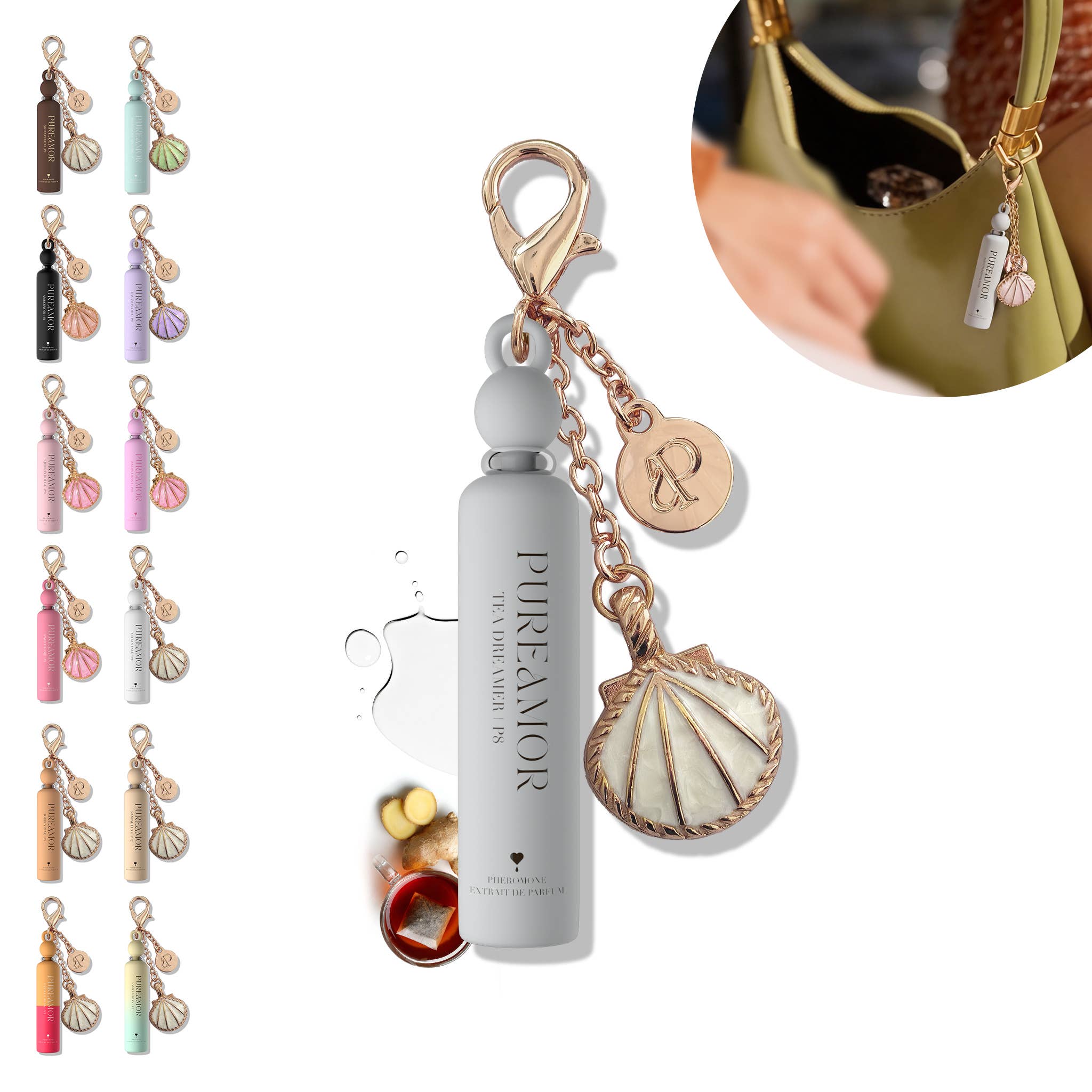 Amber Tea • Ginger • Bergamot | Pheromone Perfume Amber Tea is a bright, refined pheromone perfume inspired by Imagination by Louis Vuitton. Fresh citrus and ginger blend into smooth amber and soft woods for a clean, modern fragrance with strong unisex appeal. Size: 2 ml Keychain Perfume Clip on. Take everywhere. Carry a luxury inspired scent on keys, purses, or bags for easy reapplication anytime. An affordable entry point into a refined luxury fragrance profile, ideal for gifting. Fragrance Notes Top: Citron, Calabrian Bergamot, Sicilian Orange Heart: Neroli, Ginger, Green Tea Base: Amber, Incense, Guaiac Wood Inspired by: Imagination – Louis Vuitton